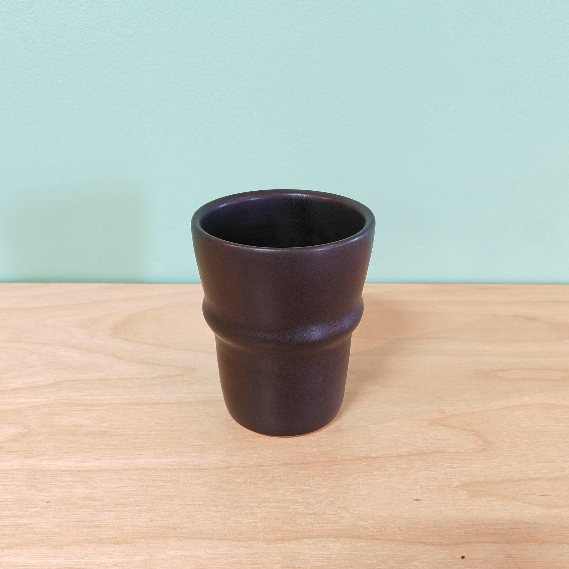 This piece is an iteration of our signature tumbler shape. The groove is designed to fit in between your fingers for easier handling. Measures 4.5" tall by 3.75" wide.