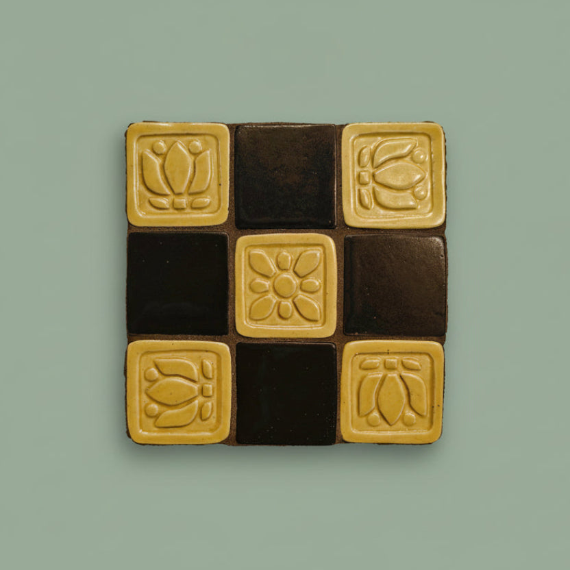 This hand-mounted decorative panel is fitted with a wire to be hung for display.