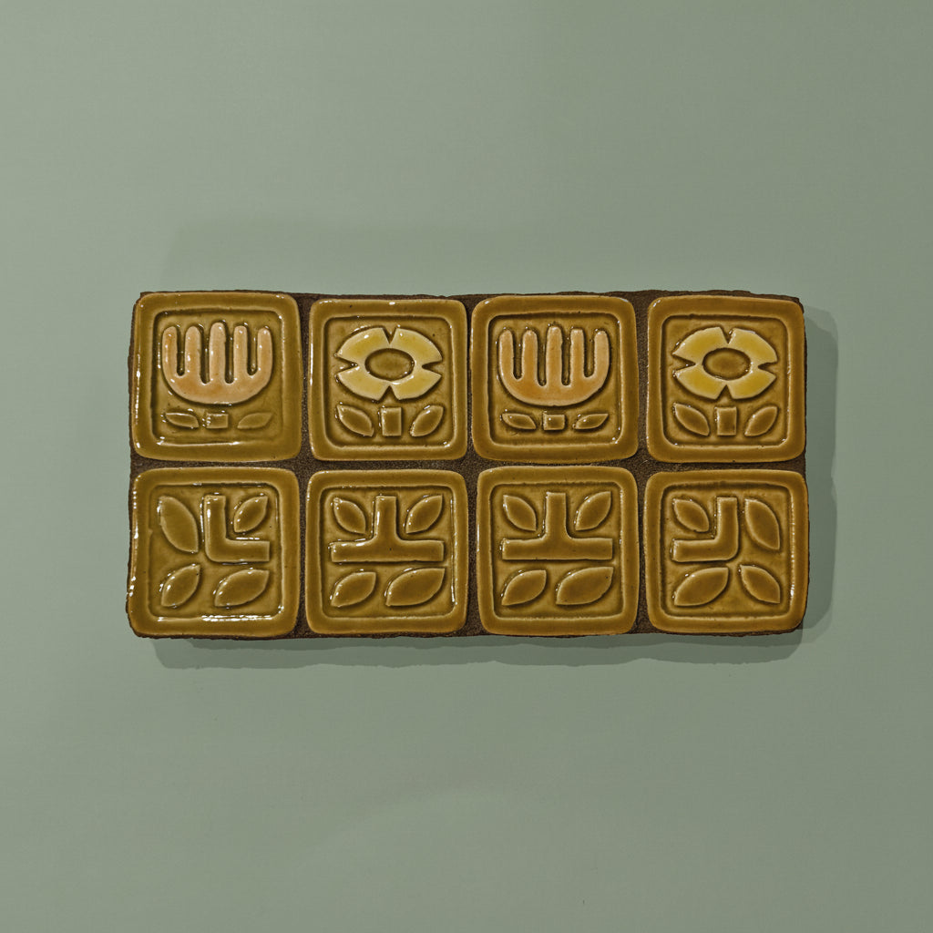 This one of a kind mounted panel features hand-painted decorative tile, and is fitted with a wire to be hung for display.